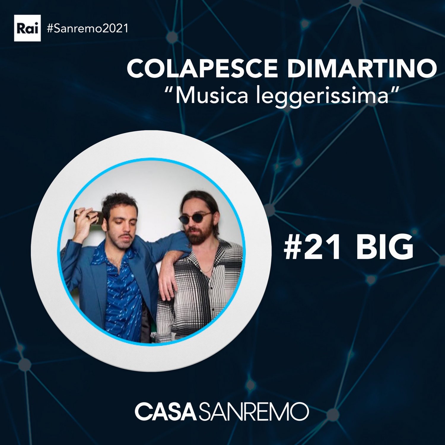 La puntata si è svolta in collegamento con Ema Stokholma da Rai Radio 2, che ha annunciato il Premio TIM Music all’artista più ascoltato sulla piattaforma “TIM Music”.