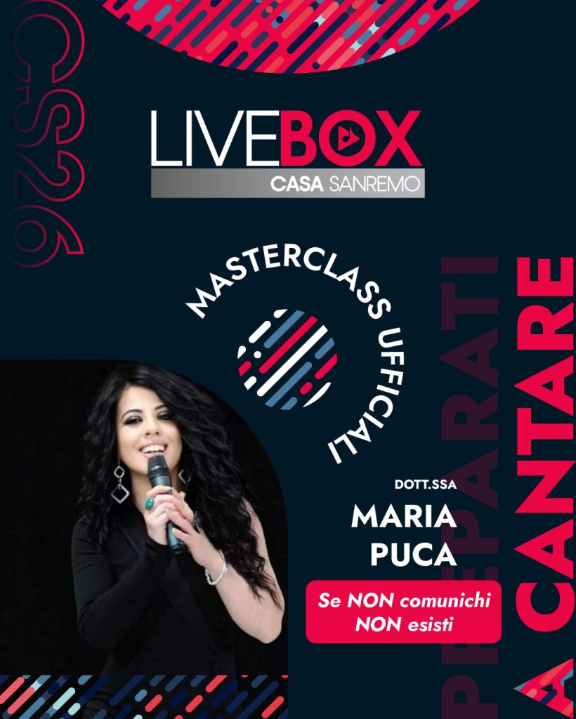 Partecipazione gratuita alle MASTERCLASS di alta formazione artistica di CASA SANREMO tenuta da importanti ospiti del mondo dello spettacolo.